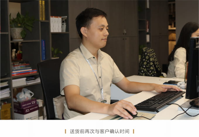 送貨前一日,由配送安排人員再次與客戶確認客戶信息,配送時間、地點無誤后,安排次日的配送及安裝工作;