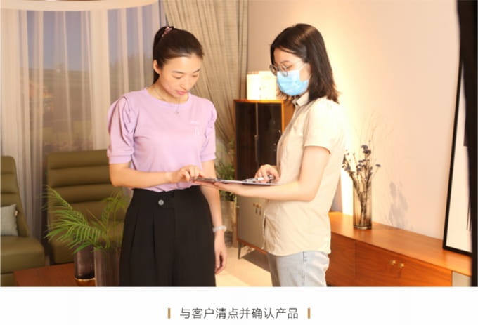 與客戶溝通關于產品外包裝拆卸等事宜(避免客戶投訴產品無外包裝,型號不對等問題)。話術參考:“請問家具的外包裝您要自留還是需要我們幫您清理呢?”