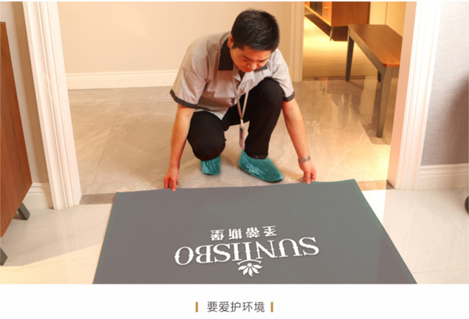 1、搬運之前現在客戶家門前放置《必一運動安裝施工指示牌》,搬運和安裝過程中避免發生碰撞和聲響,控制說話聲音以免驚擾客戶家人或碰壞物品。送貨安裝服務人員在進入顧客家前,應穿上自備的鞋套。